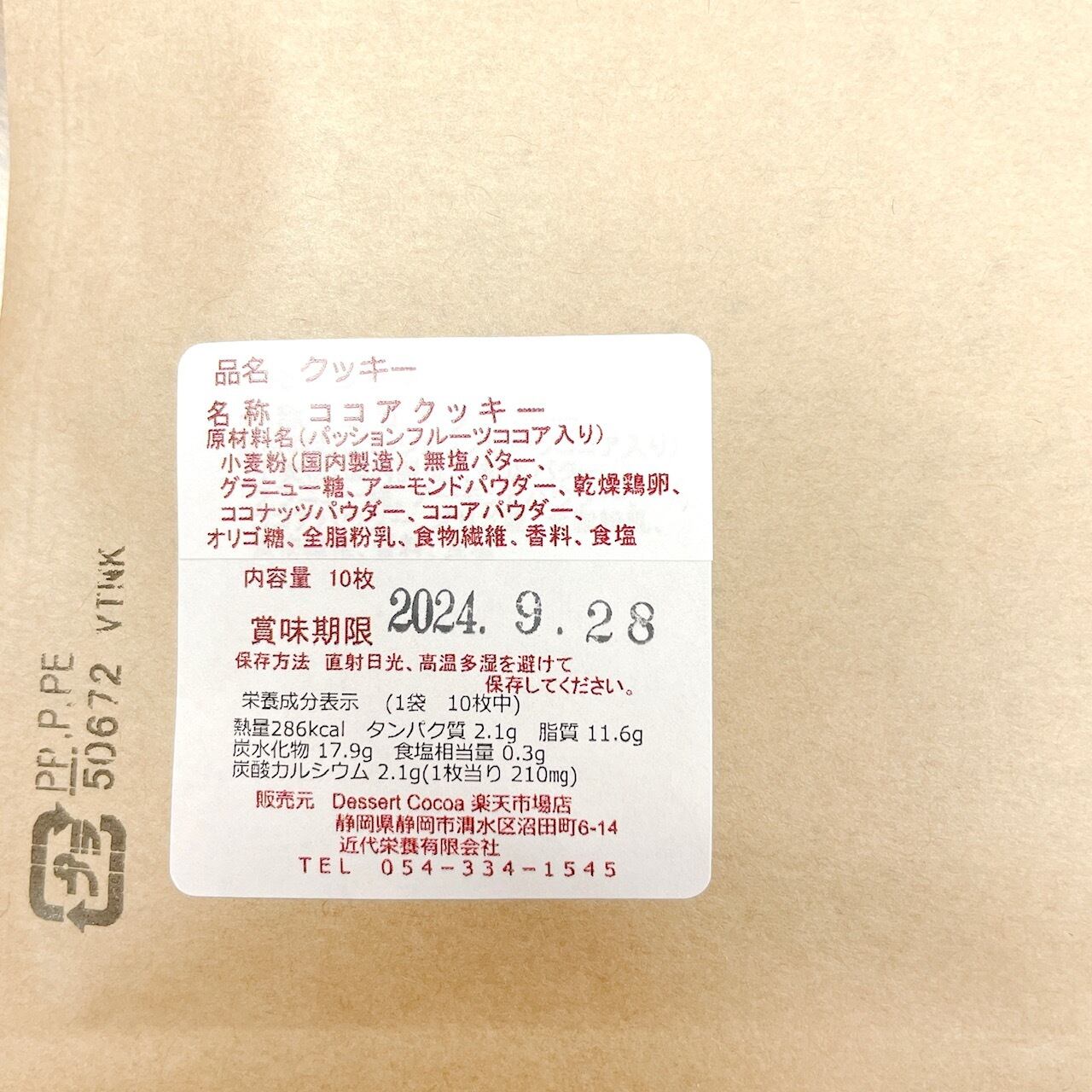 名称 ココアクッキー